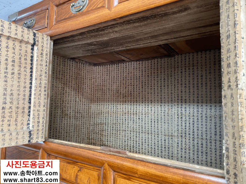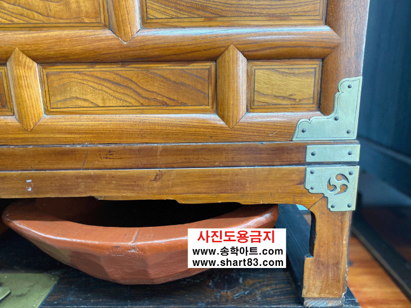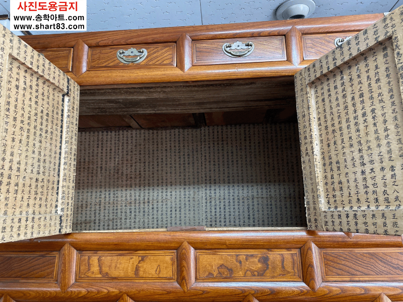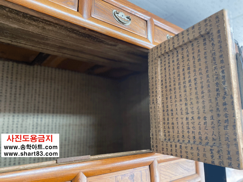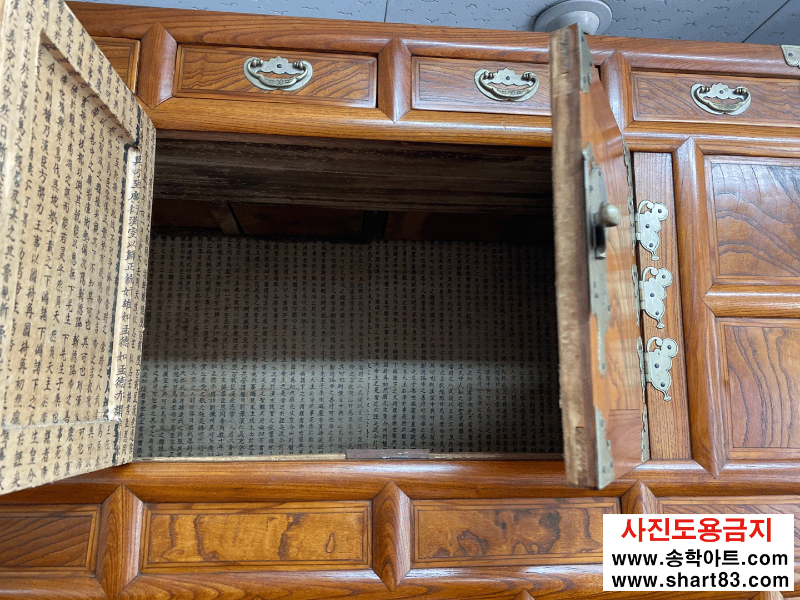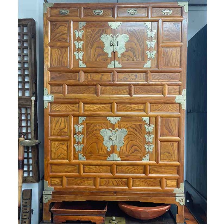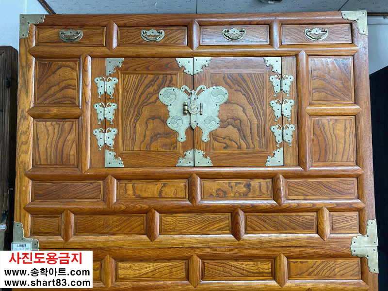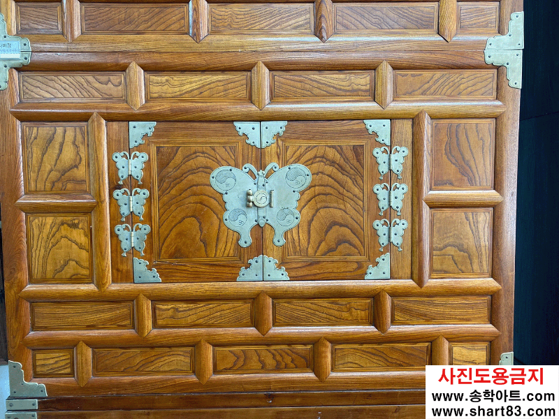 ▶ 괴목나무 재질의 이층장으로 나비 장석이 화려하게 장식이 되어 기품있고 아름다움.