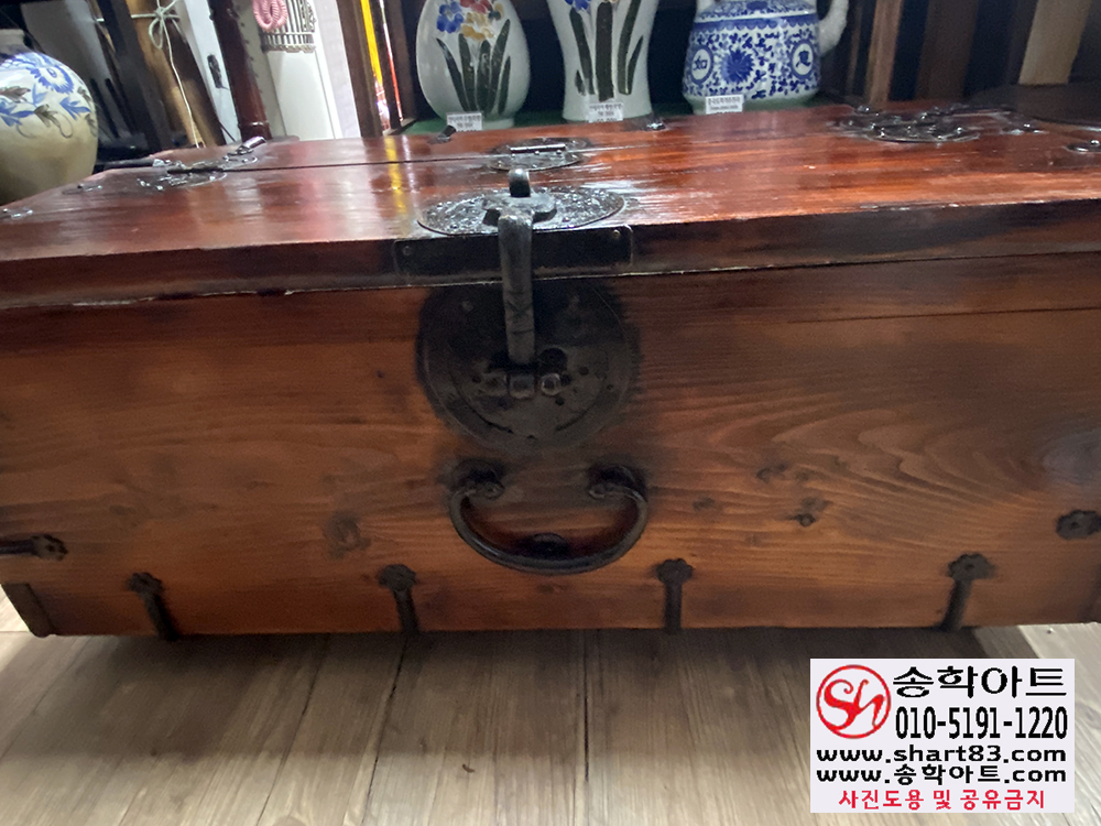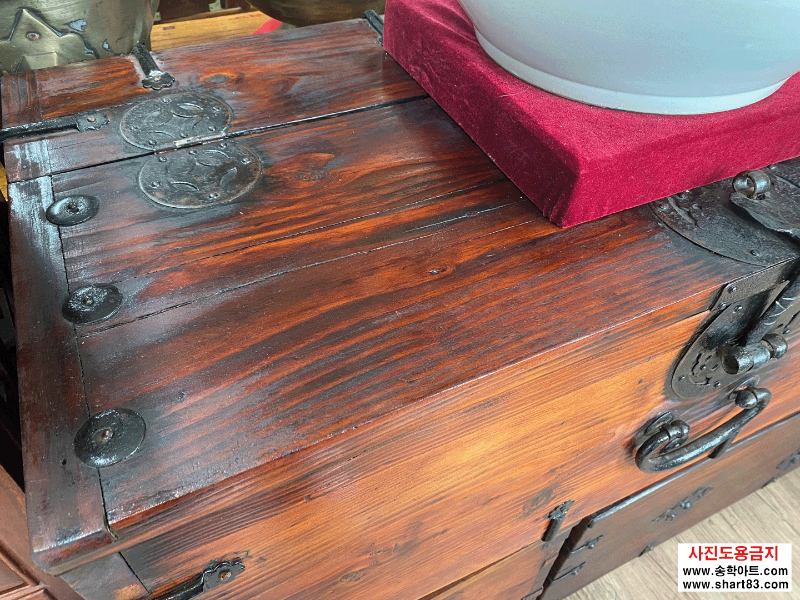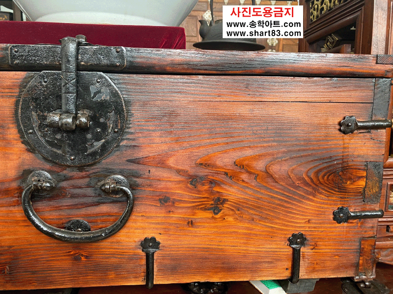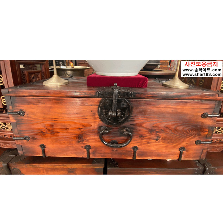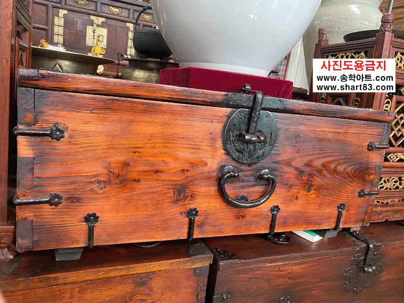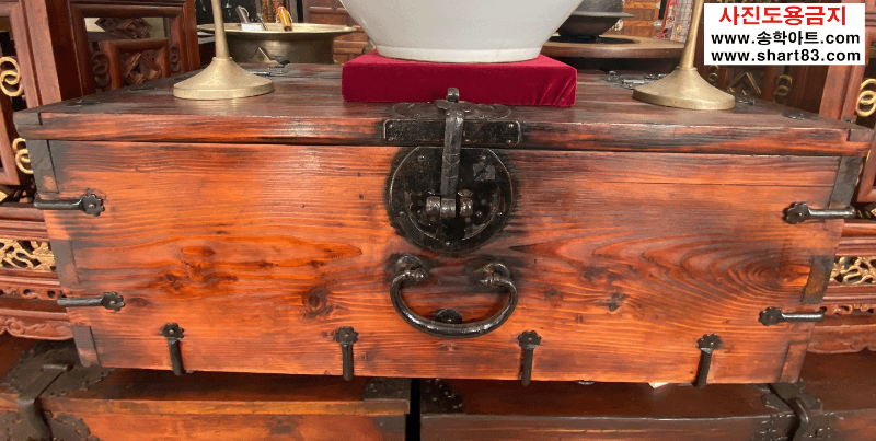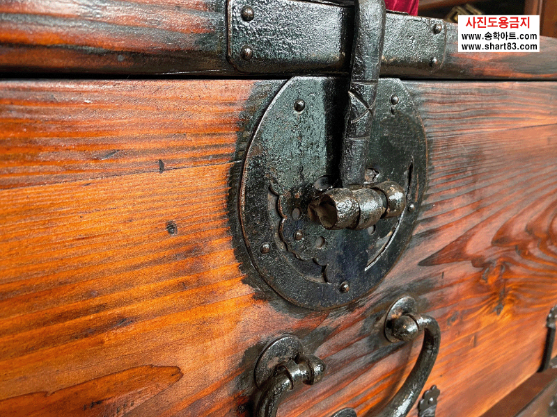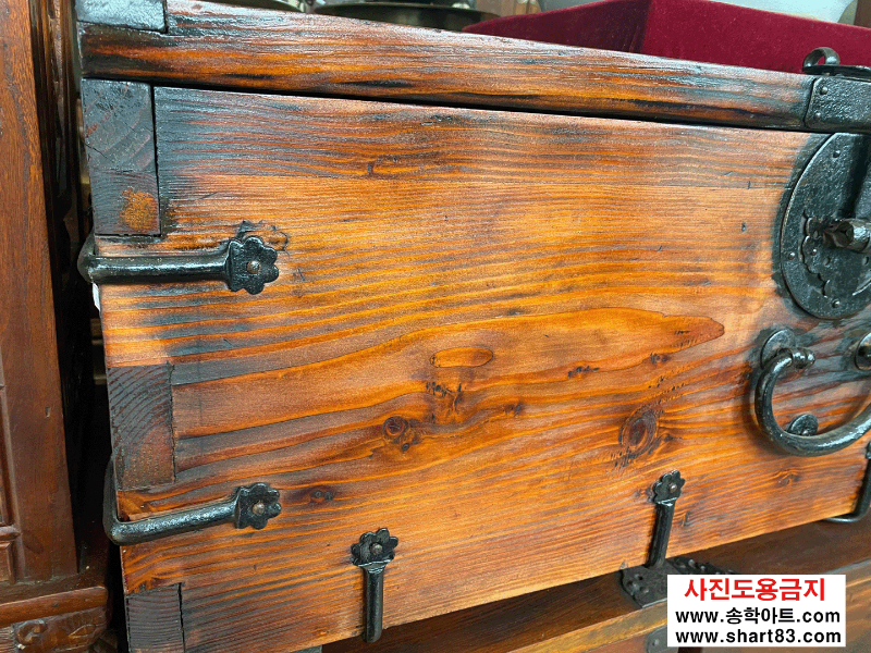▶ 윗닫이 돈궤로 연대가 있고 무쇠 장석이 깔끔하게 장식되어 있음.