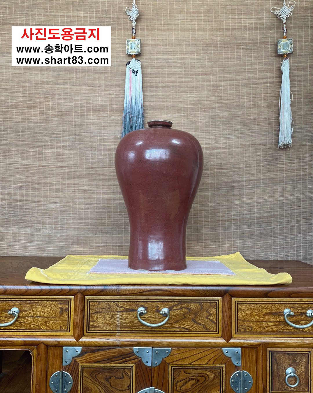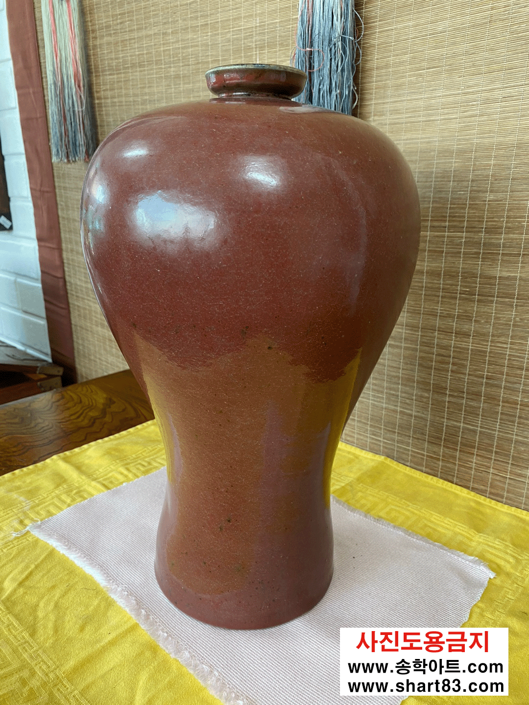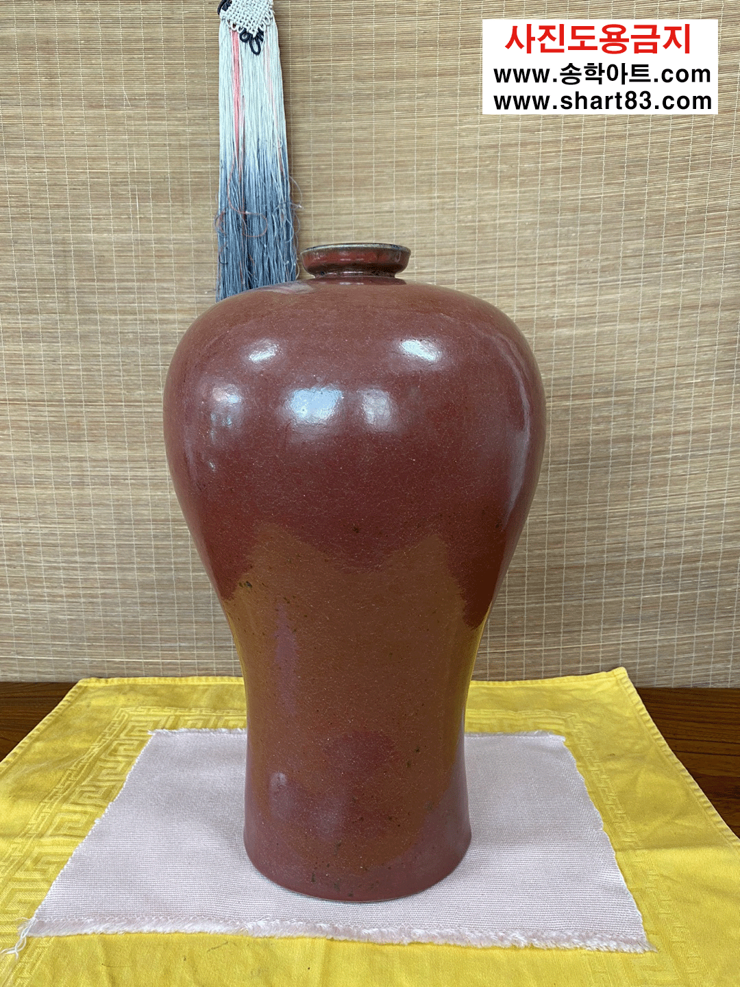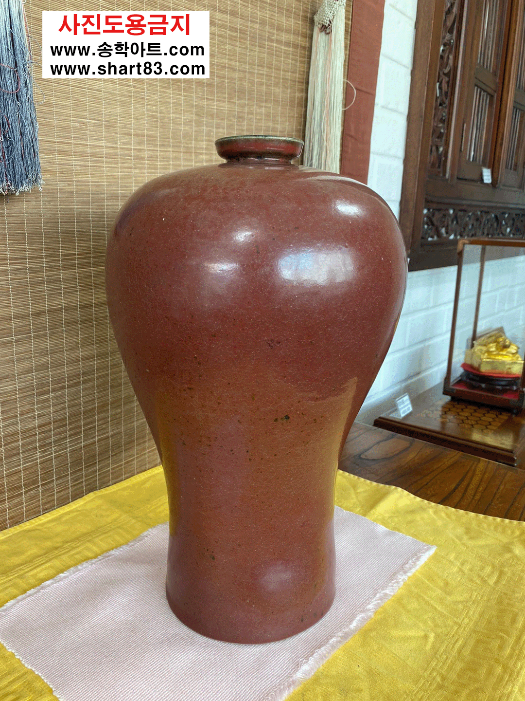 ▶ 입이 좁고 어깨는 팽만하여 넓고 밑은 홀쭉한 형태를 지닌 붉은색의 매병