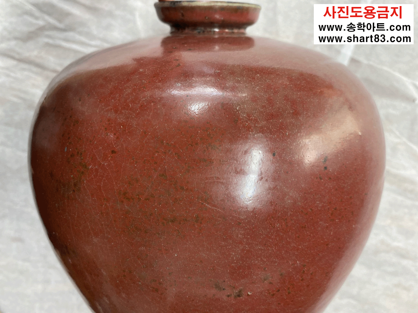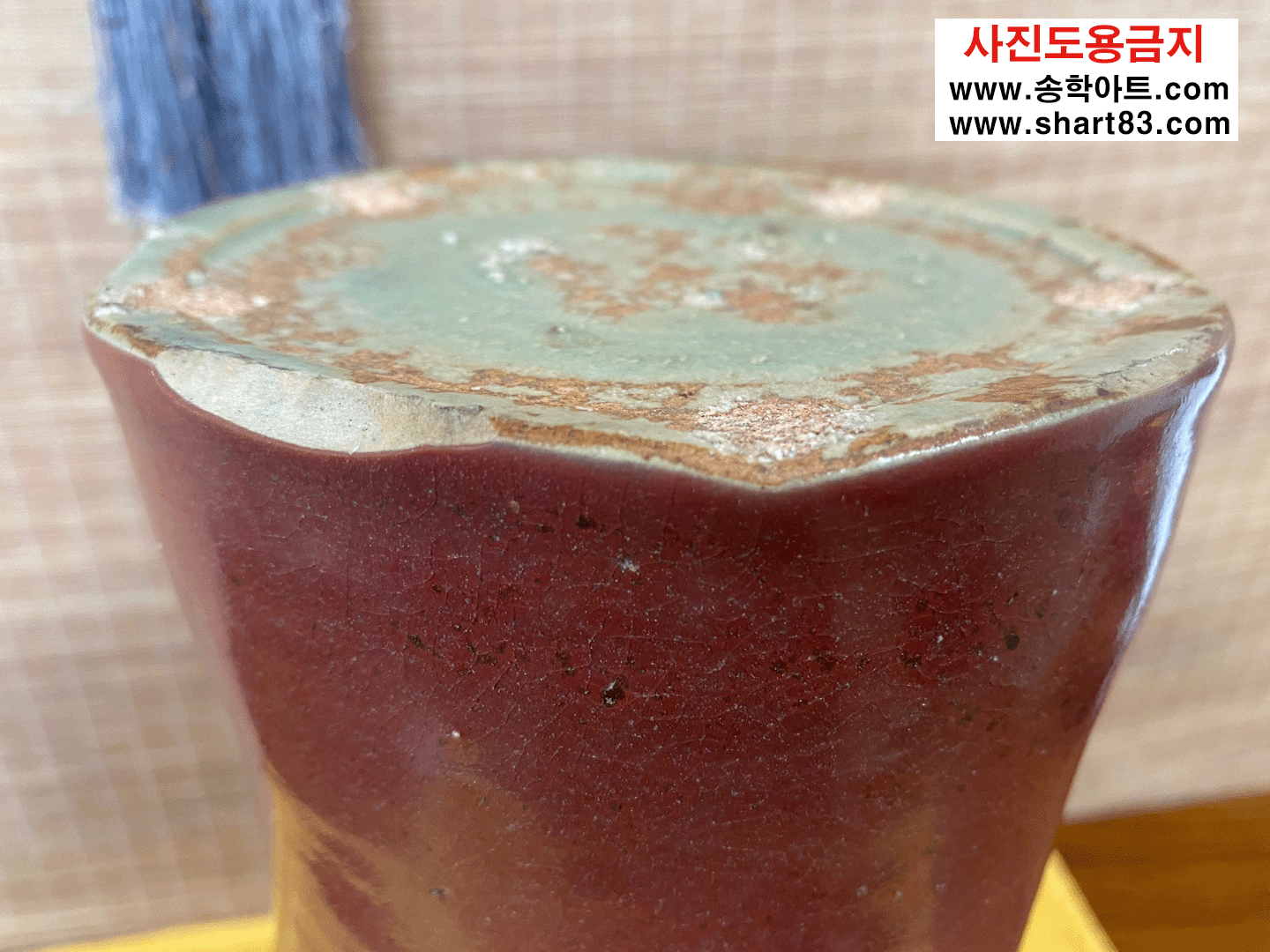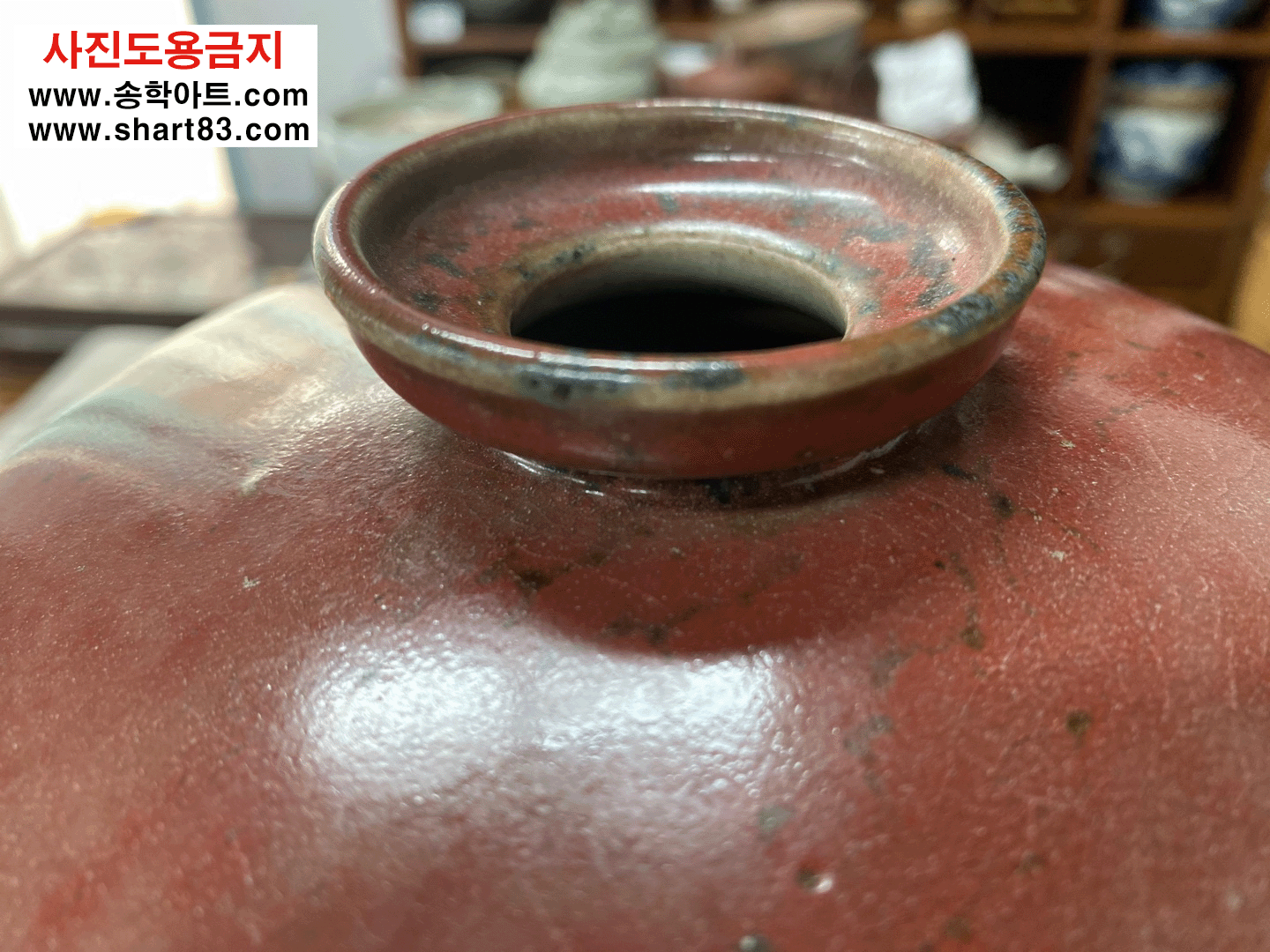 진사도자기 ? 산화동, 산화철 등을 섞어 제조한 유약이 가마의 불과 반응하여 특유의 빛깔과 무늬가 만들어지는 도자기. 진사 유약은 첨가물의 비율, 농도에 따라 가마 소성 시 색의 변화가 매우 민감하고 예민함 |