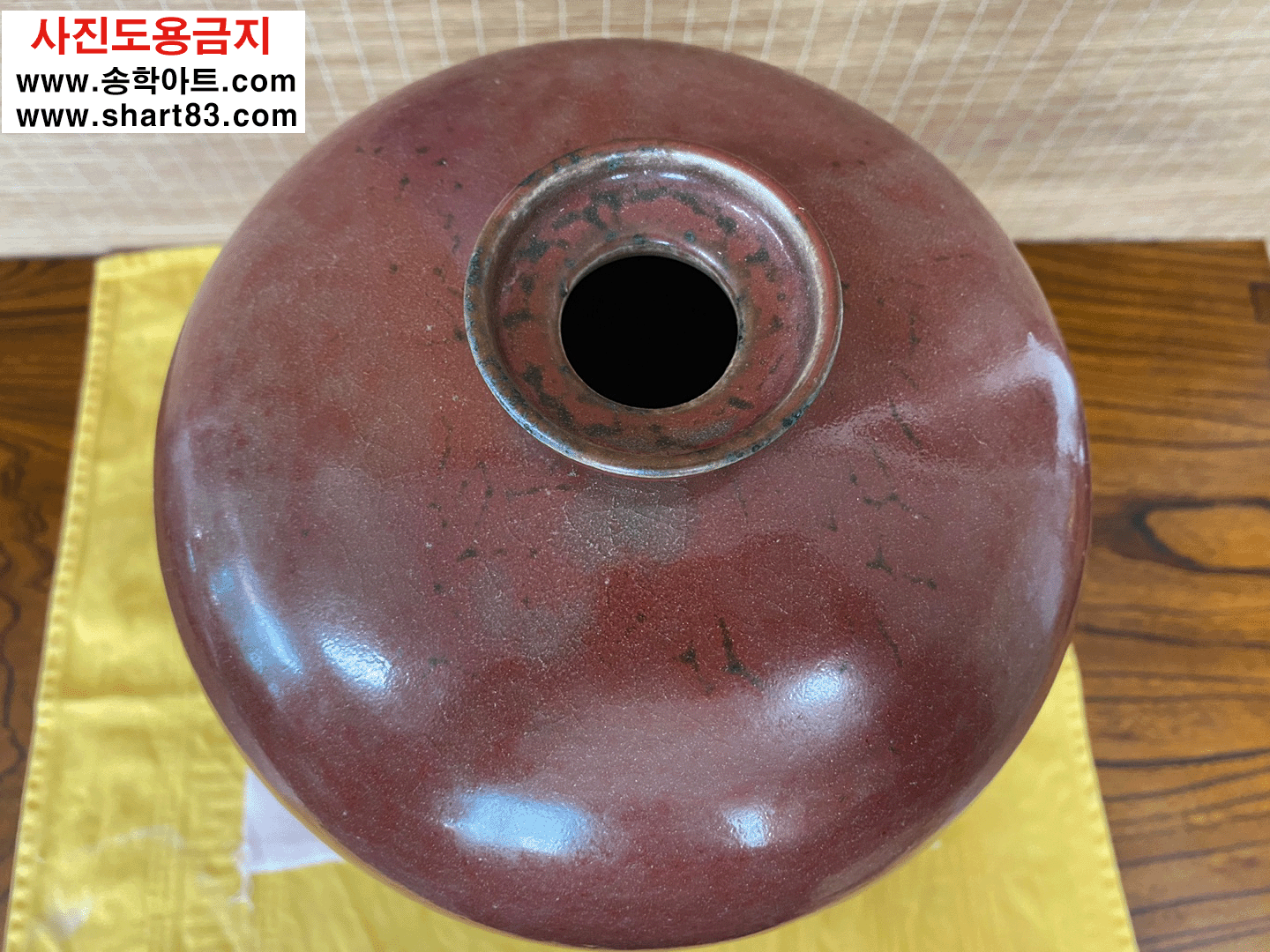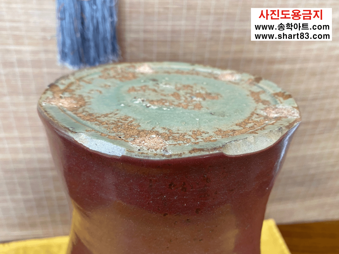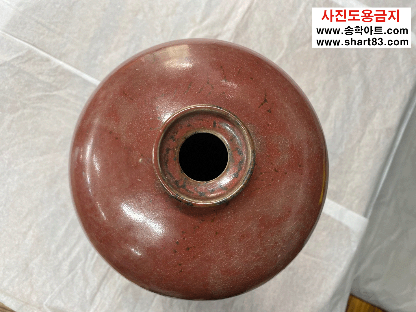 진사도자기 ? 산화동, 산화철 등을 섞어 제조한 유약이 가마의 불과 반응하여 특유의 빛깔과 무늬가 만들어지는 도자기. 진사 유약은 첨가물의 비율, 농도에 따라 가마 소성 시 색의 변화가 매우 민감하고 예민함 |