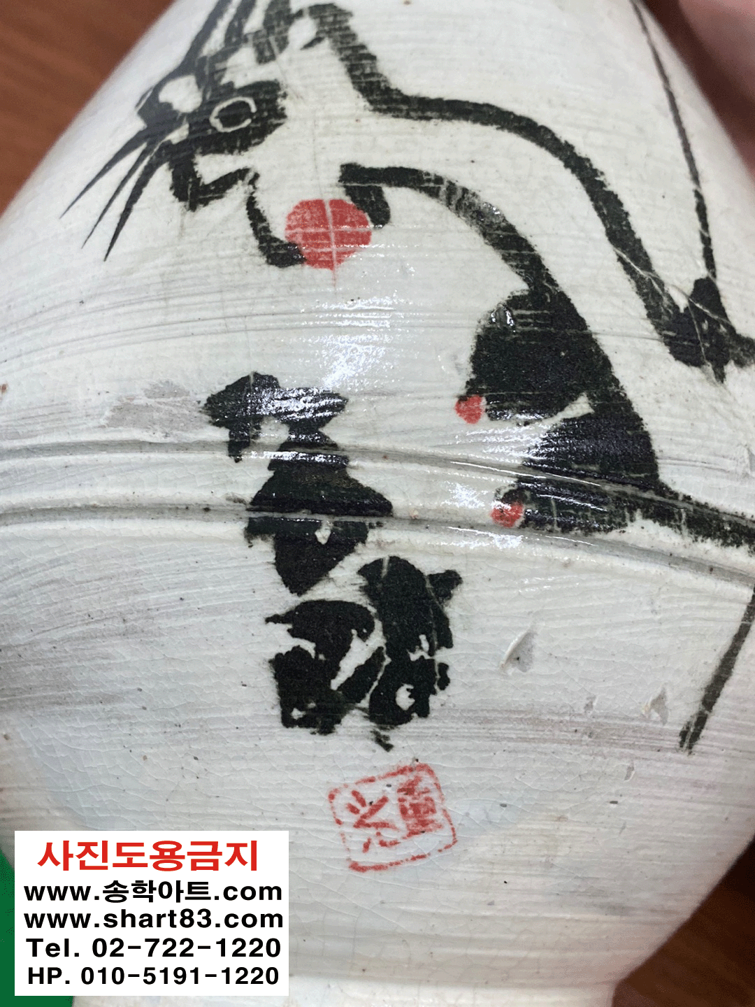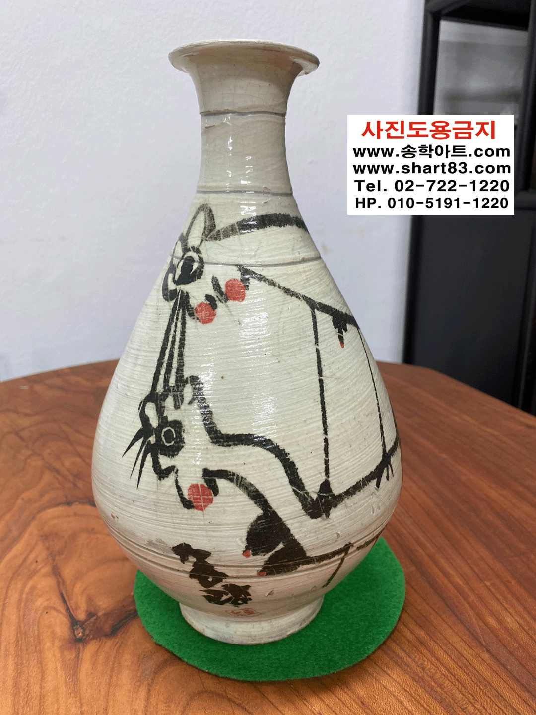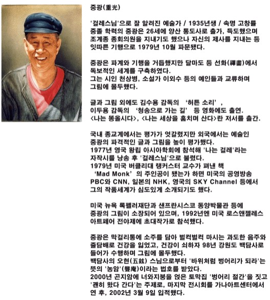 ▶ 걸레스님으로 알려진 중광스님의 그림 작품이 그려진 회청자주병