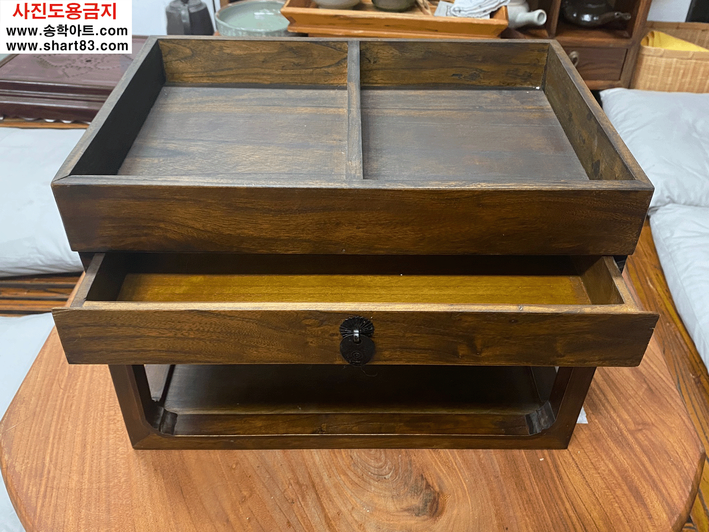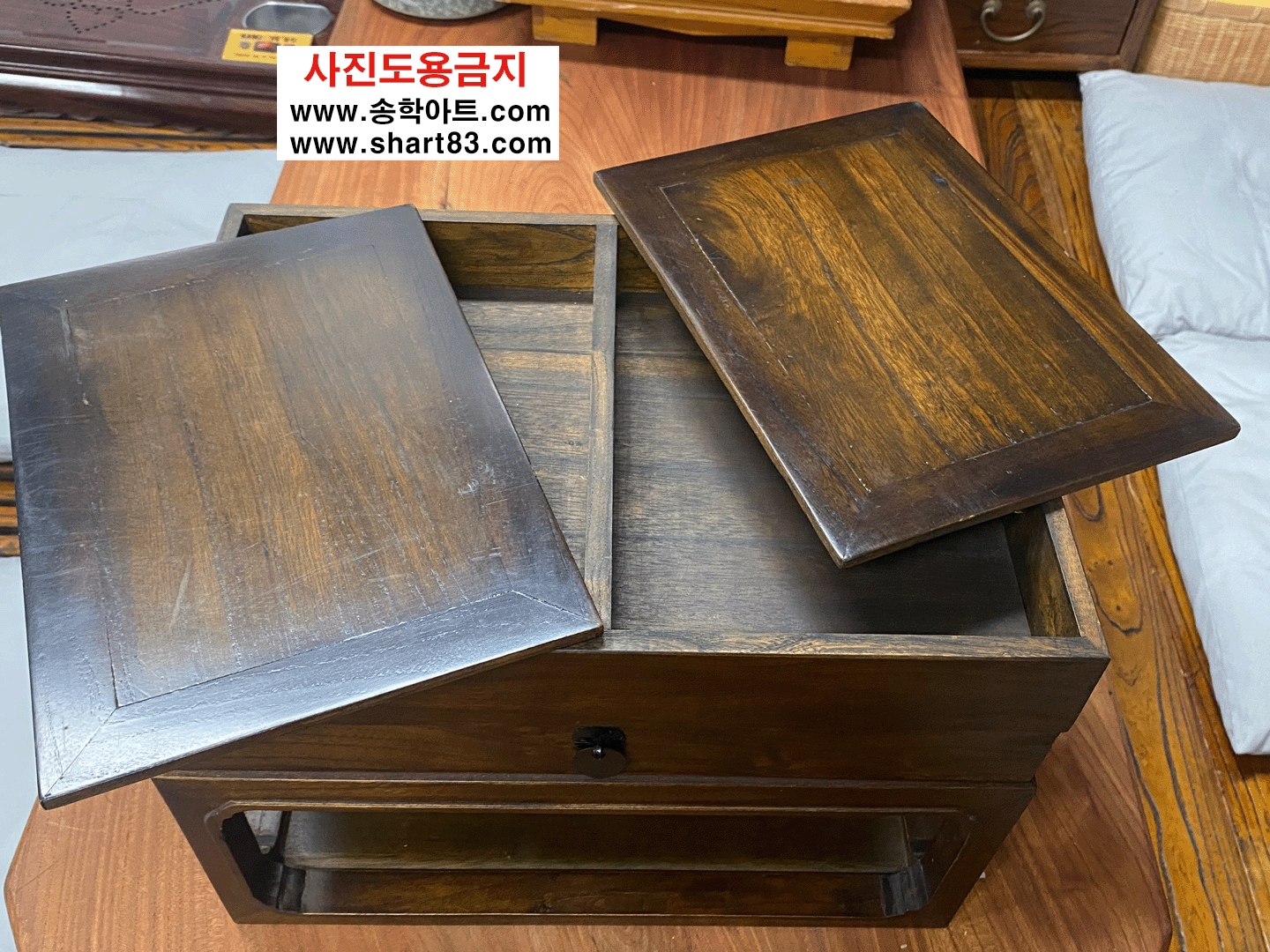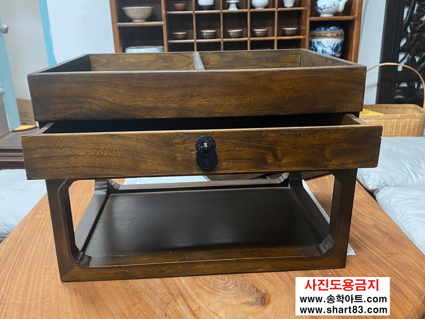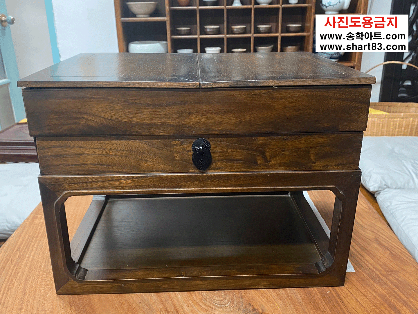 고가구 벼루함으로 상판이 오픈되고, 서랍도 있는 구성