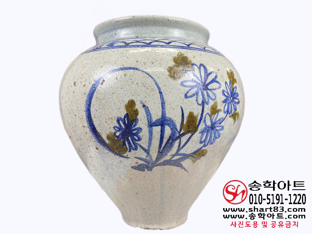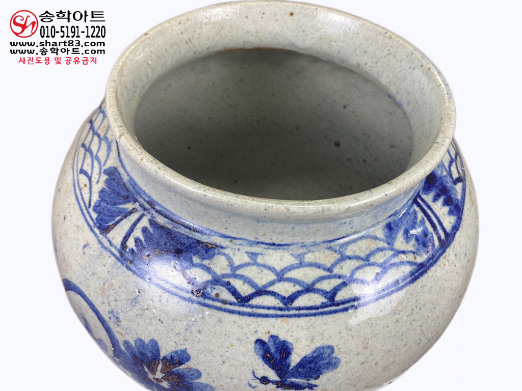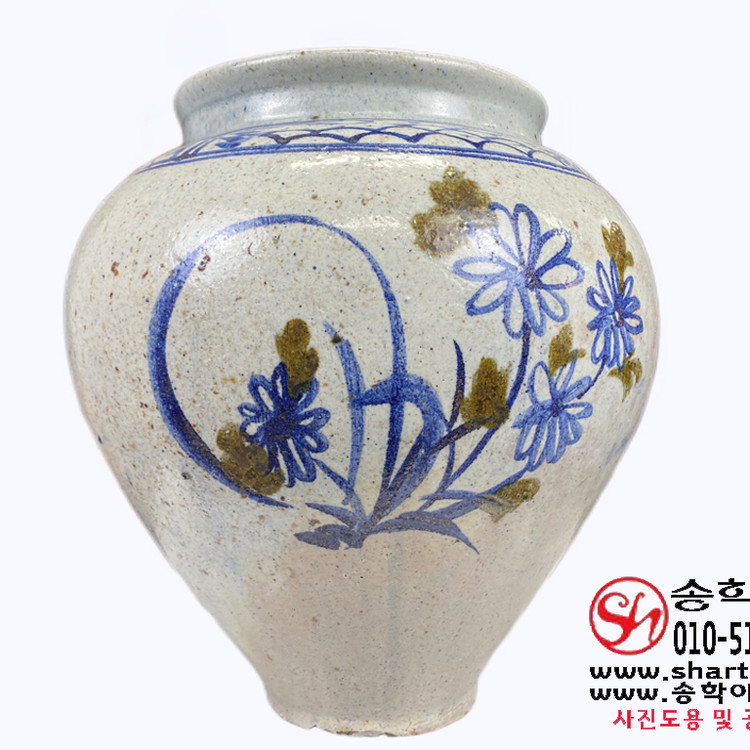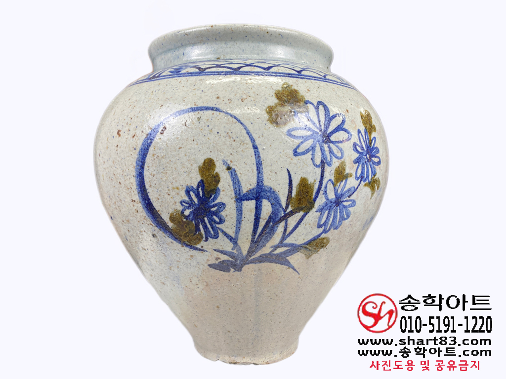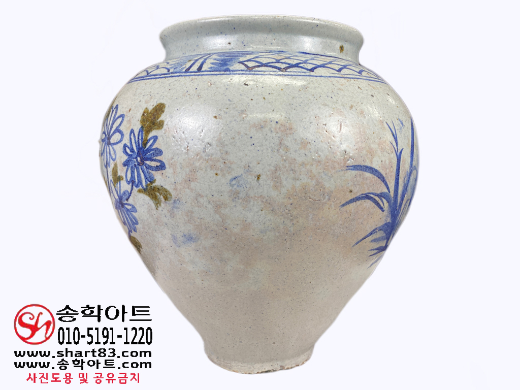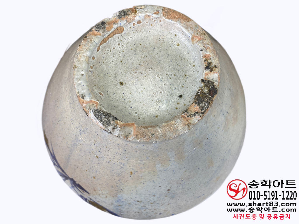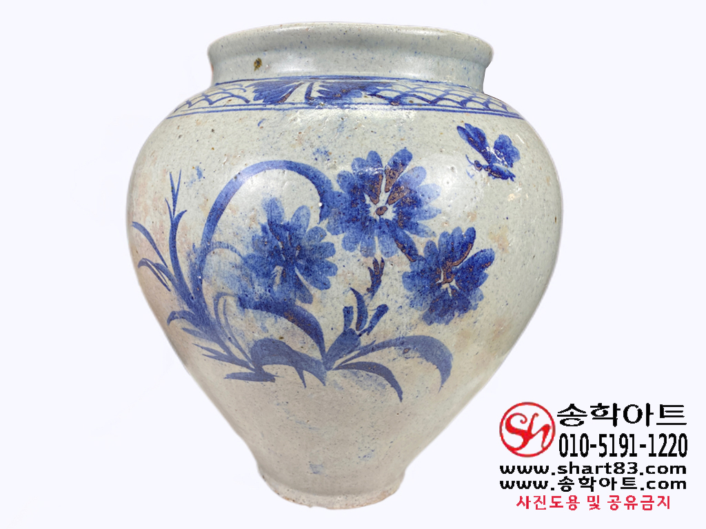 ▶ 특징 : 한면은 철화로 꽃잎파리에 포인트, 반대편은 청화로 나비그림에 포인트가 있는 청화백자호