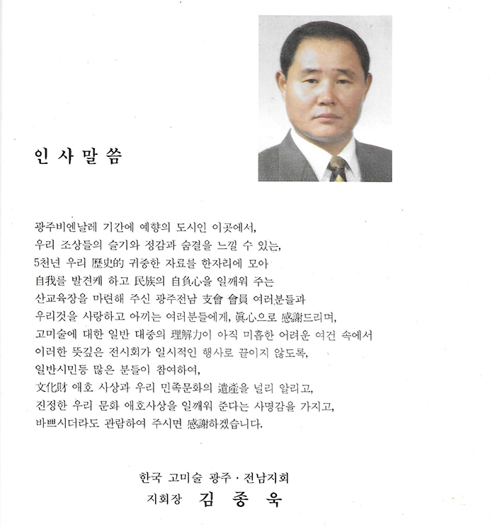 한국 고미술협회 광주지부 지회장을 역임하며, 45여년간 전남지역의 고미술품