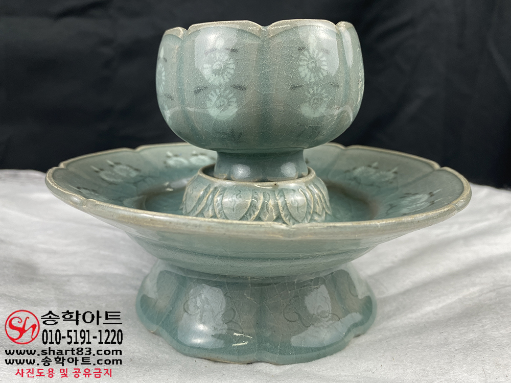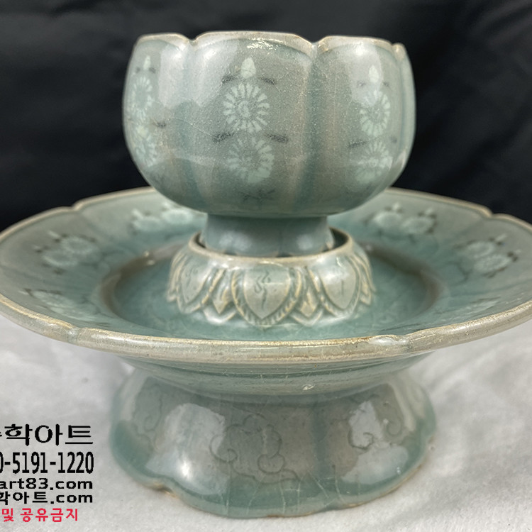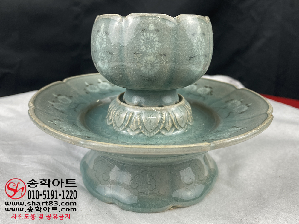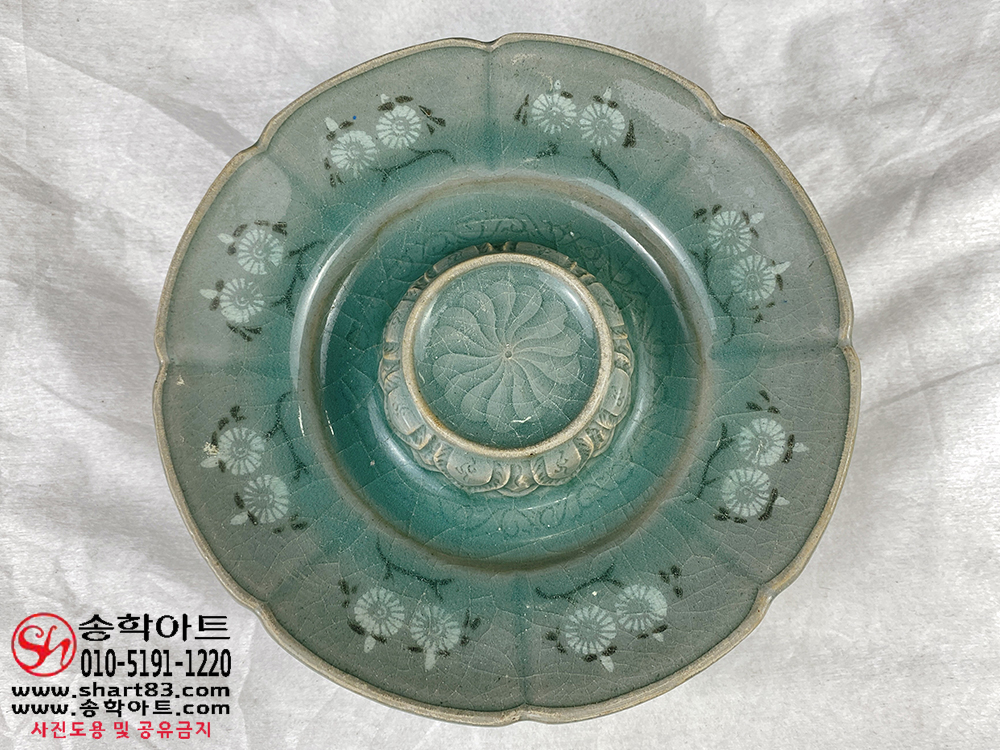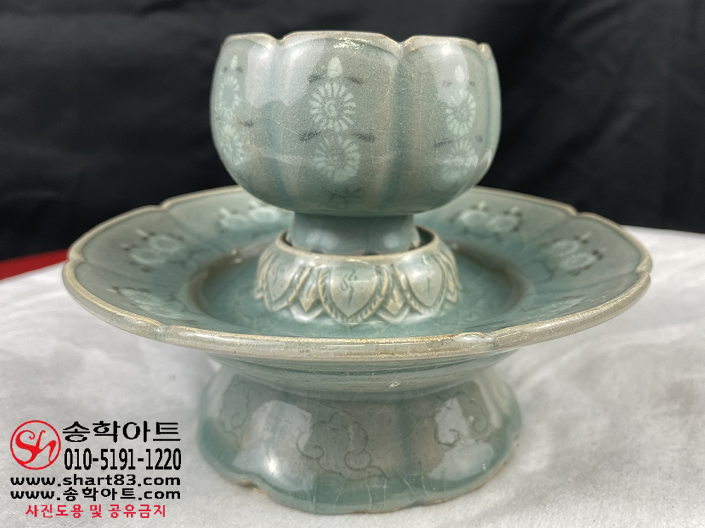 ▶ 품명 : 흑백상감청자 국화문 잔잔대