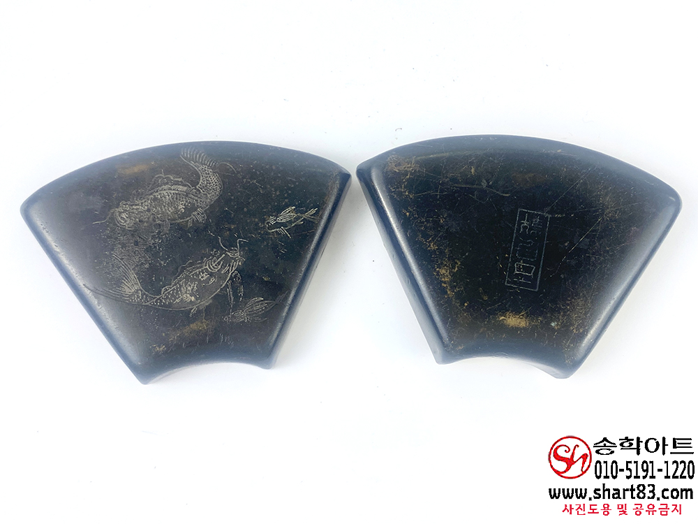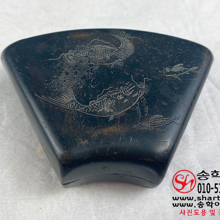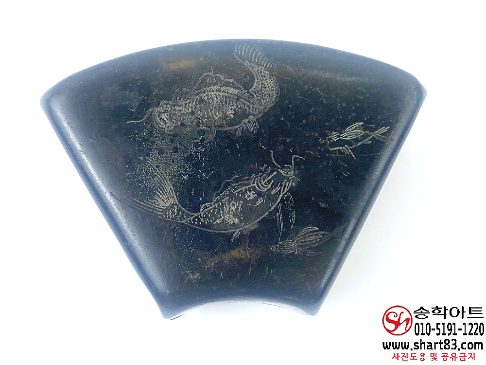 ▶ 연못을 헤엄치는 잉어 4마리가 섬세하고 조각되어 있음