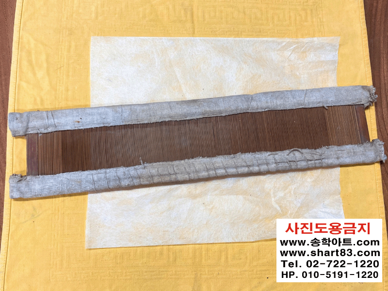▶ 바디살, 기둥대, 마구리가 온전한 완형의 바디로 옛날 모시옷을 짤 떄 사용하던 베틀의 부속품