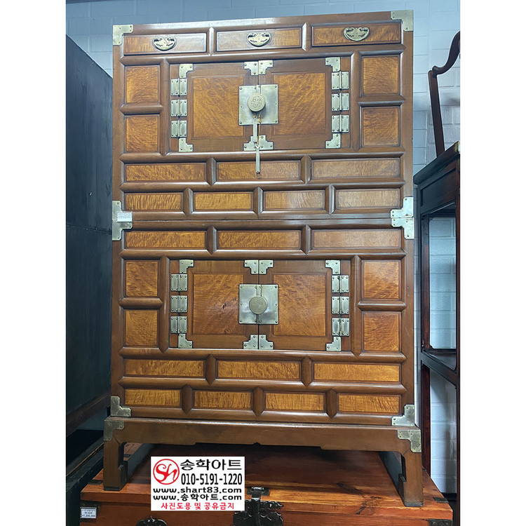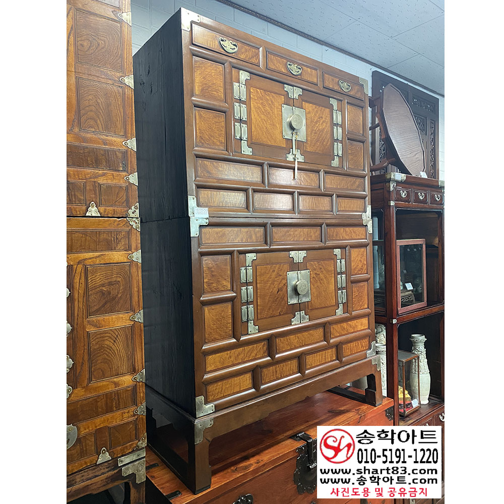 각 층은 분리되어 있고, 박쥐문양의 들쇠가 달린 3칸서랍으로 구성
