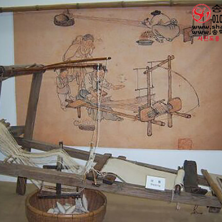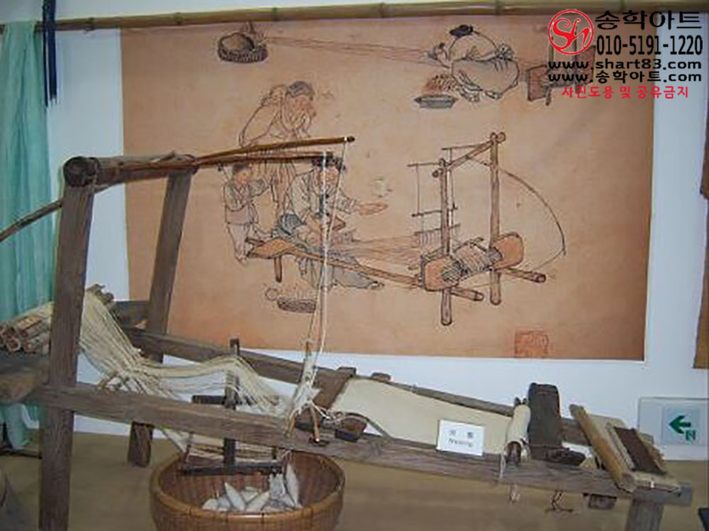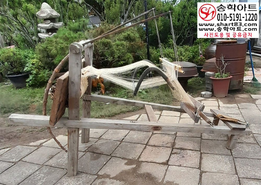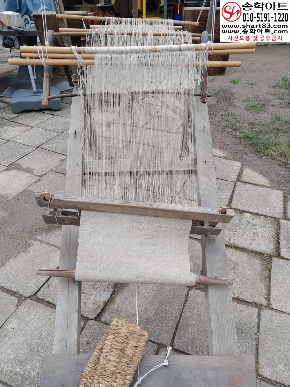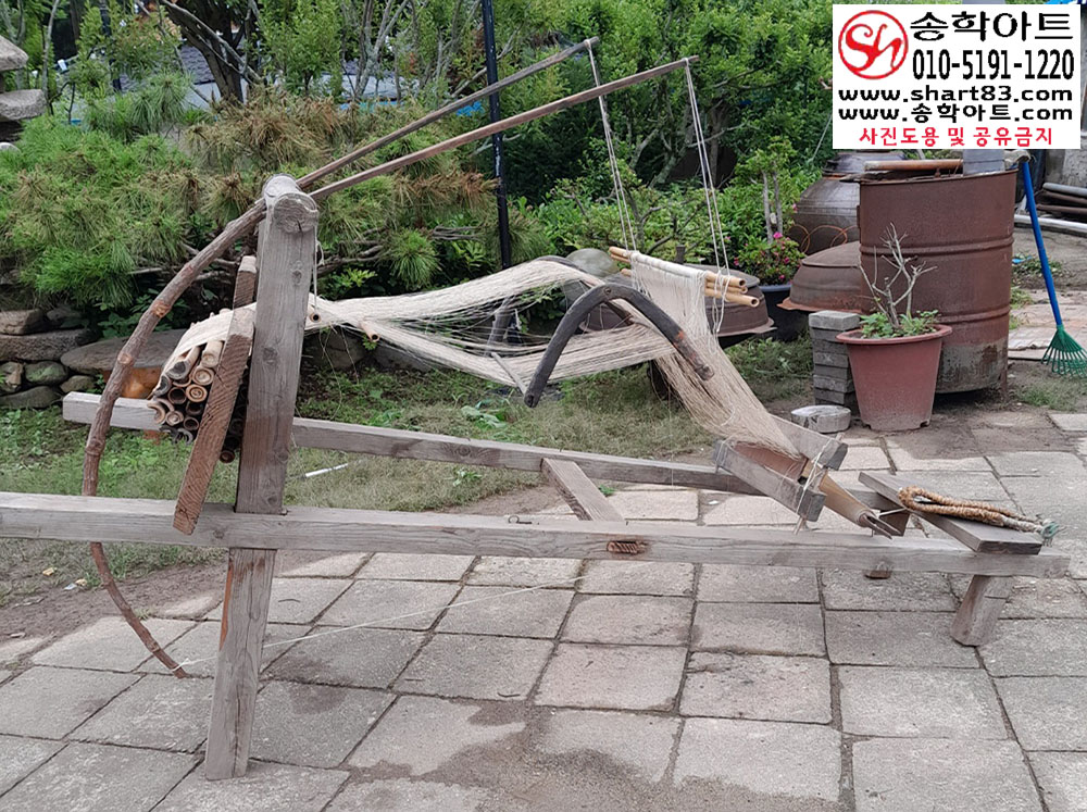 ▶ 직조기라고 하는 옛날베틀로 실제 삼베를 제작했던 상태 좋은 베틀기계.