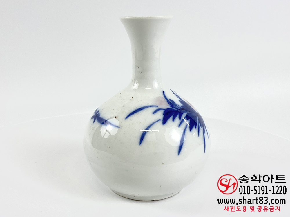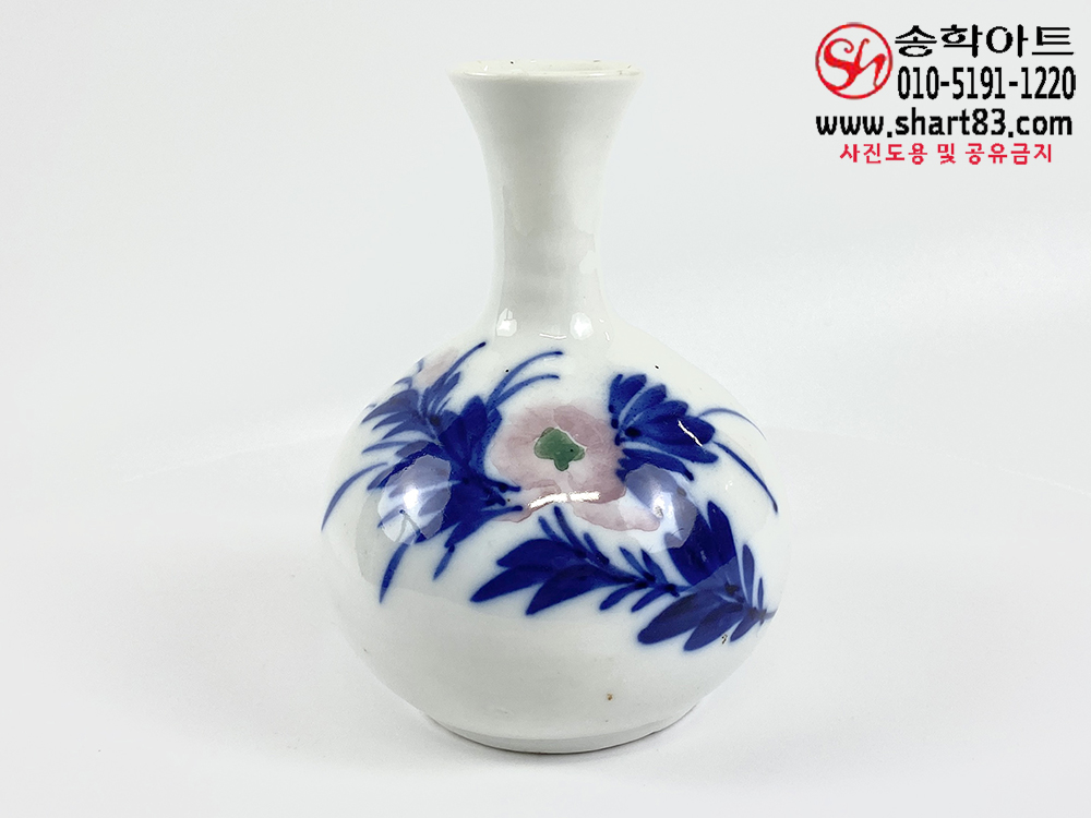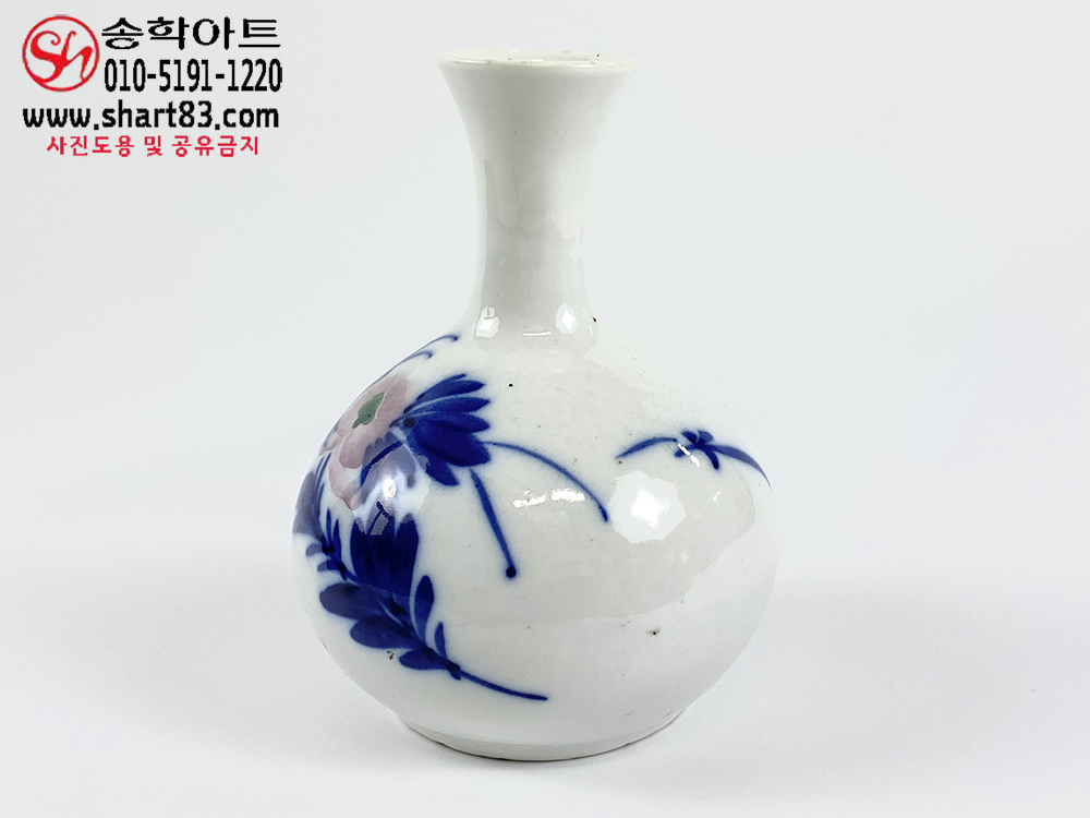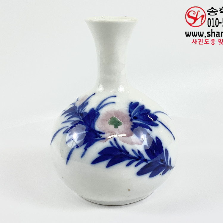 구한말 청화홍화모란무늬 백자 주병