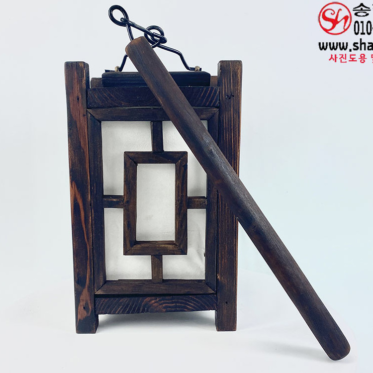 영상소품으로 제작 된 사각목초롱으로 나무뼈대에 한지가 둘러진 조명기구