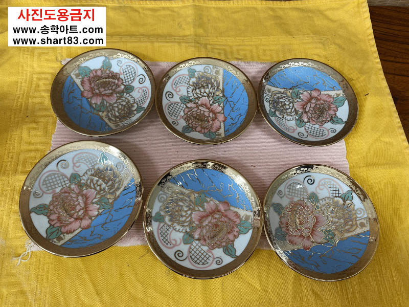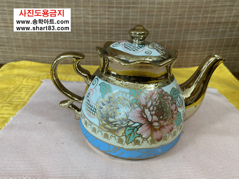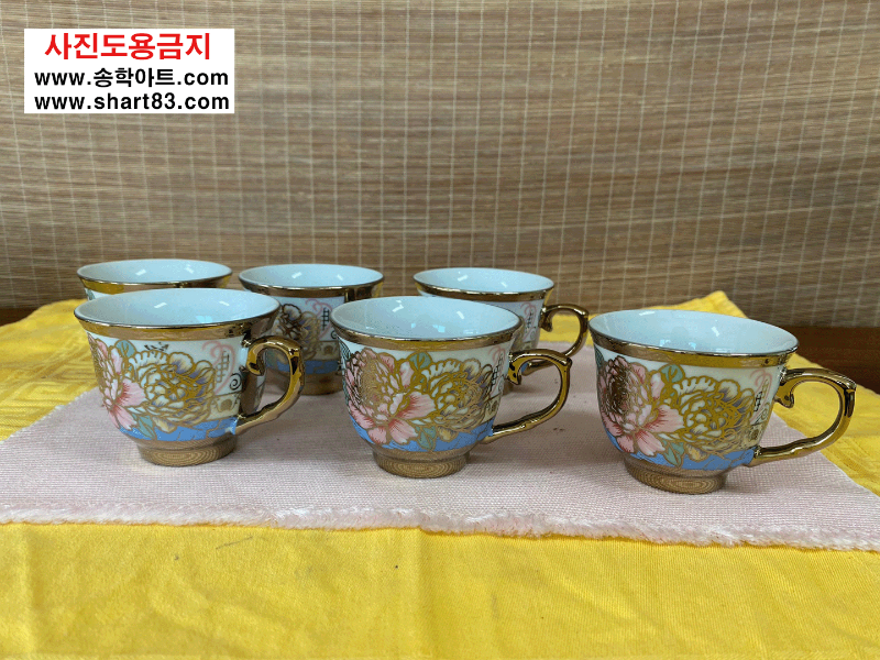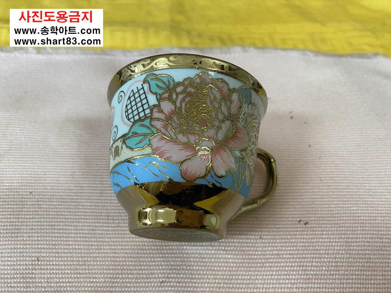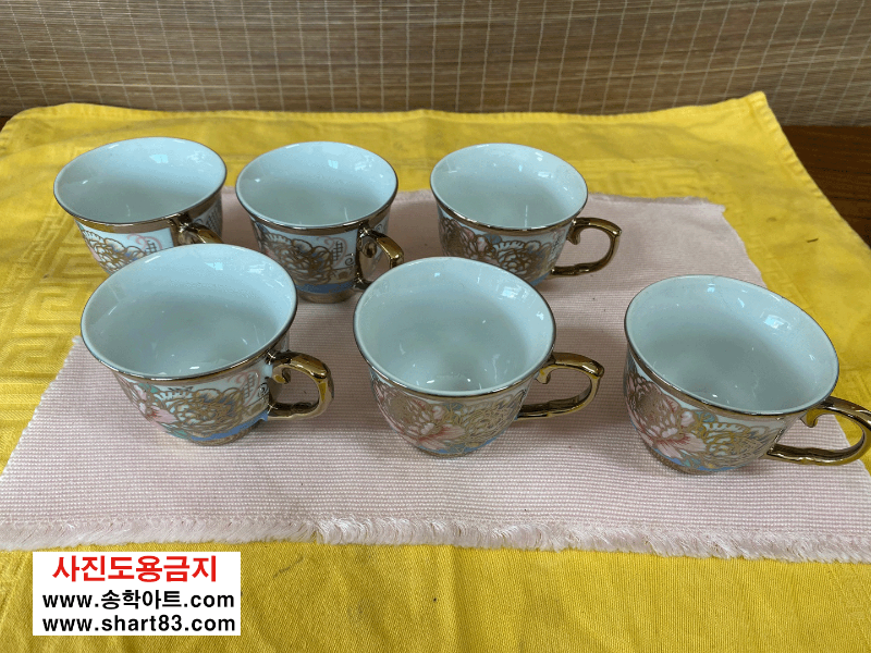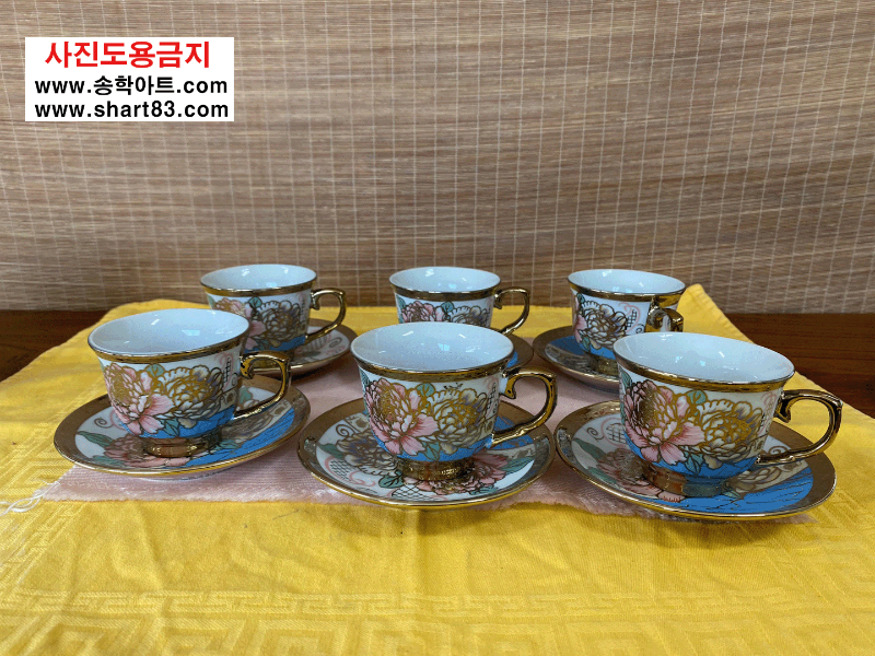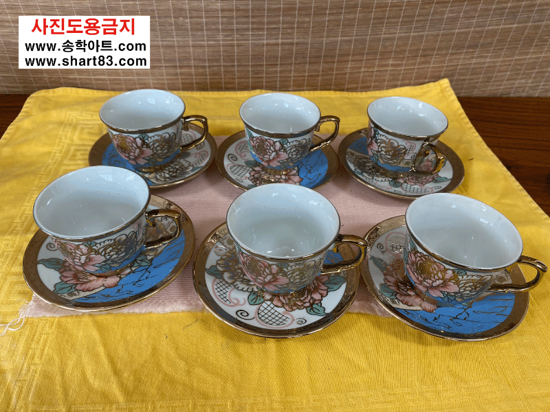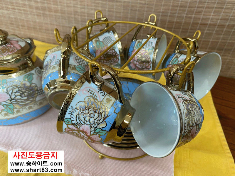 ▶ 꽃문양이 화려한 금장의 엔틱 찻잔세트.