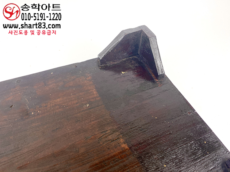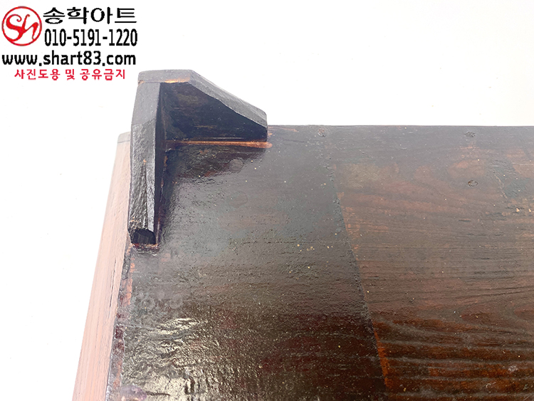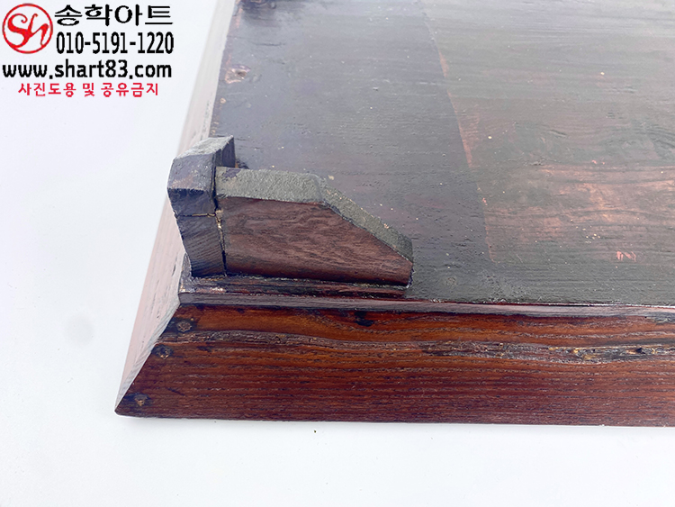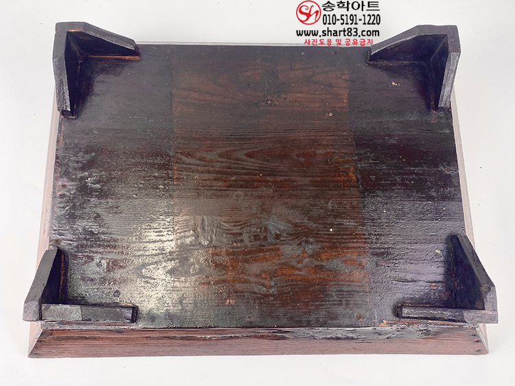 표면에 옻칠이 있으며, 직사각형으로 측판은 비스듬하게 올라가도록 짜있음.