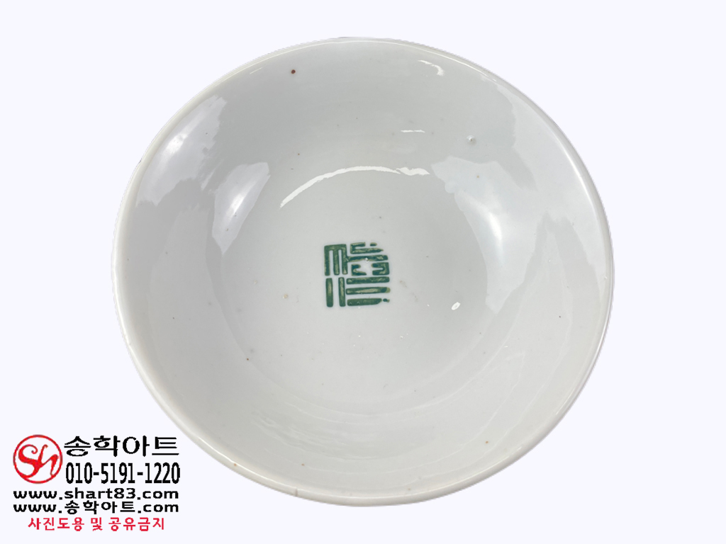 접시 한가운데 녹색의 한문 福 자가 선명하게 있음