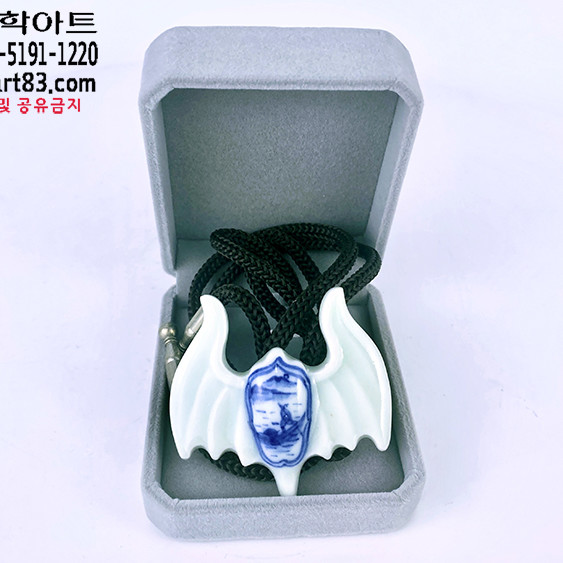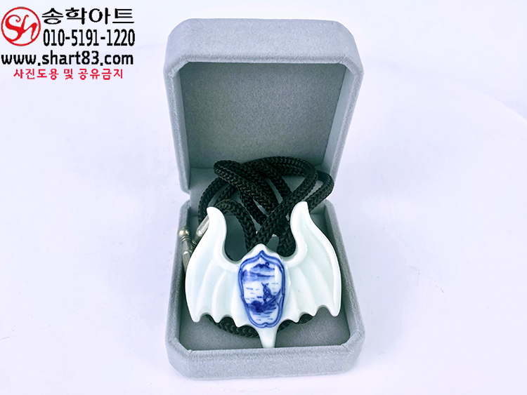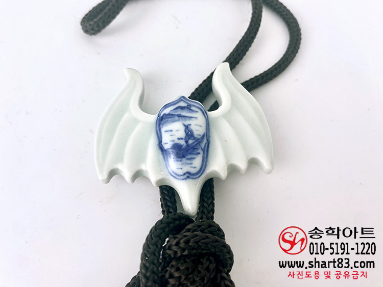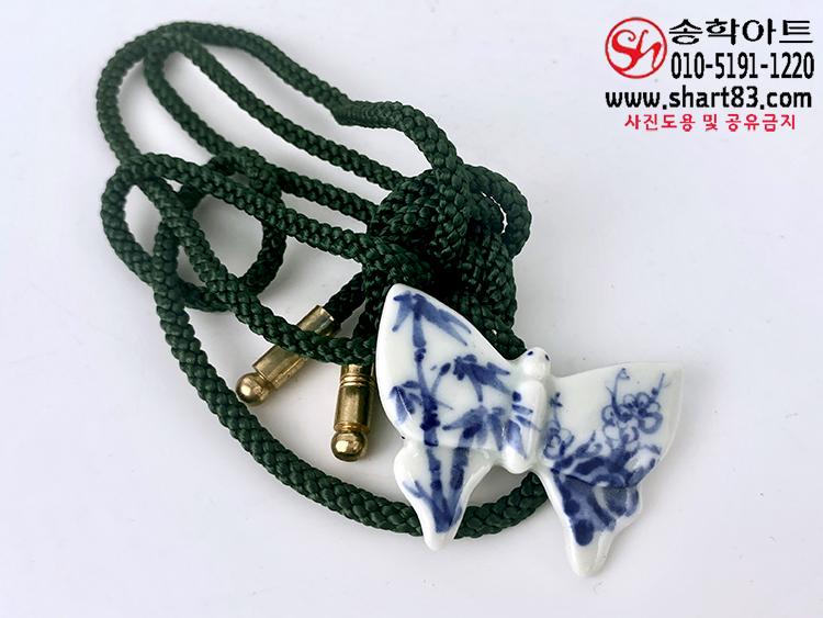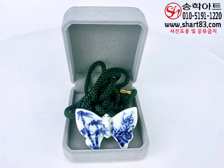 ▣ 나비 형태에 사군자 청화 그림이 그려져 있는 백자 도자기 타이슬링