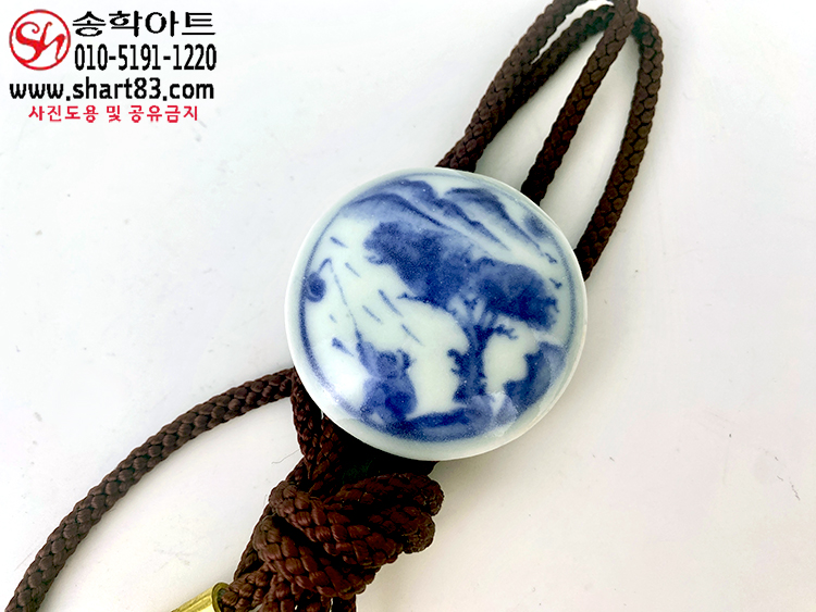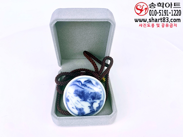 ▣ 원형 형태에 인물산수화가 청화로 그려져 있는 백자 도자기 타이슬링