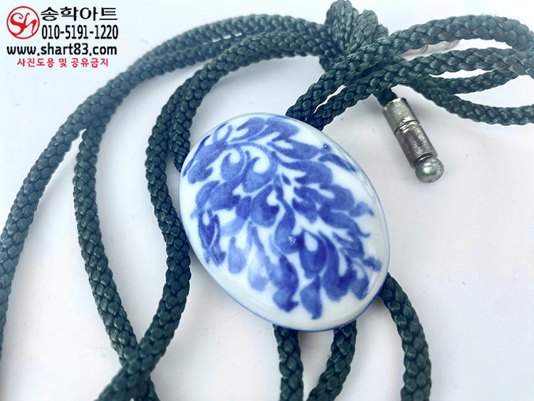▣ 타원 형태에 당초문 문양이 청화로 그려져 있는 백자 도자기 타이슬링