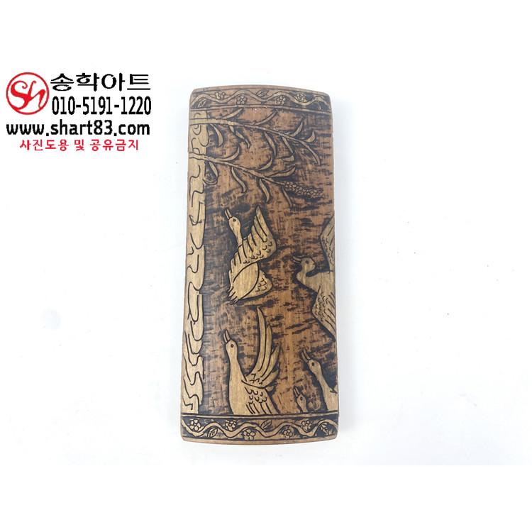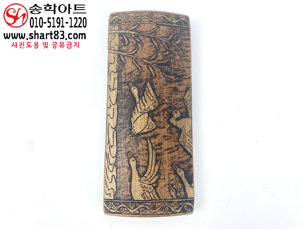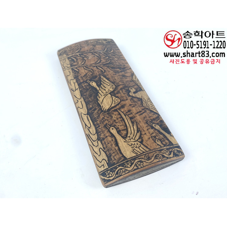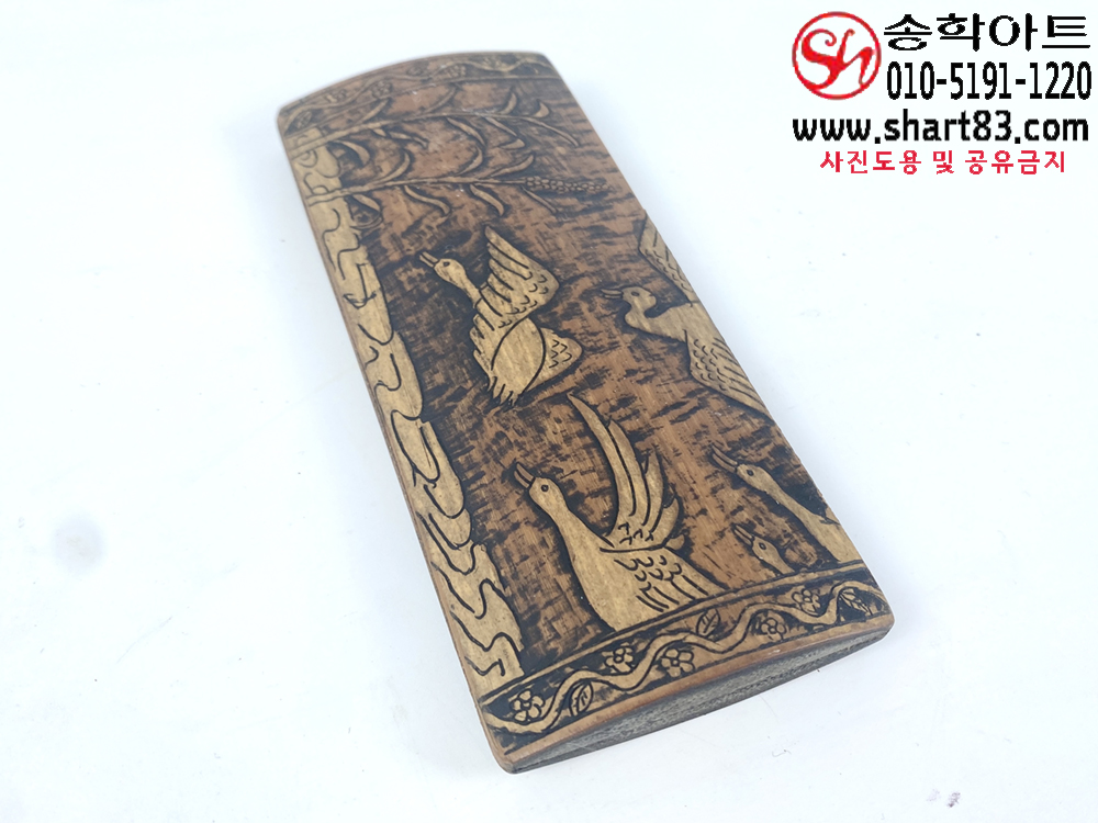 다른 면엔 물가로 날아내리는 기러기들이 손각(手刻)되어 있음.