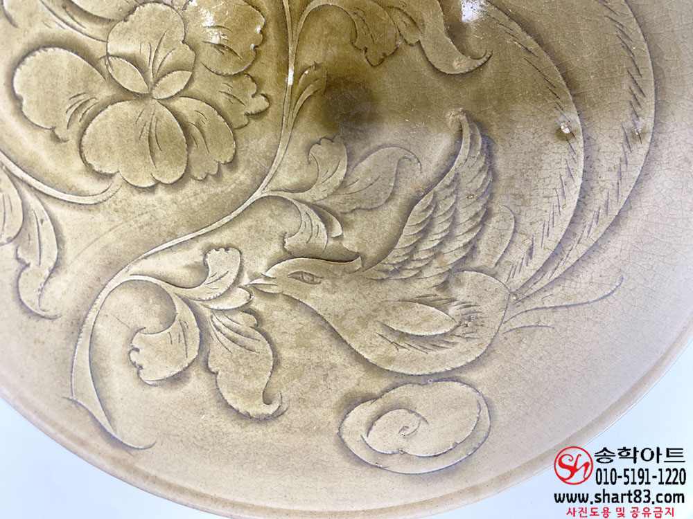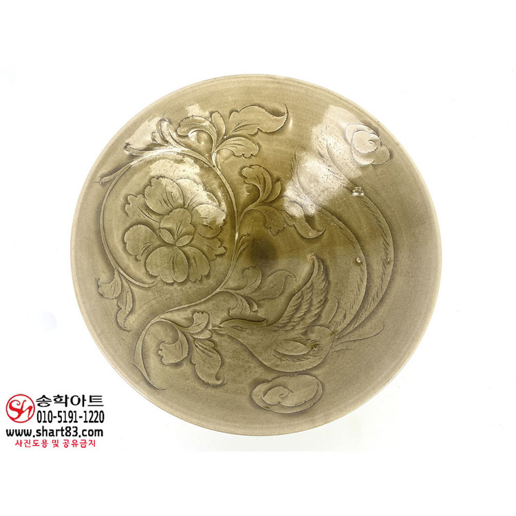 ▶ 품명 : 북송대 요주요 양식 화조문 청자완 (20세기 중국 공예)