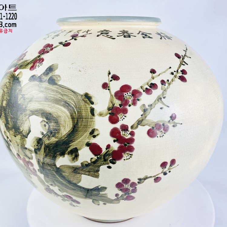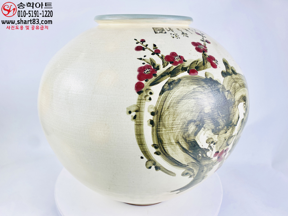 (Buncheong Moon Jar with Iron-Brown & Red Plum Blossom Design)
