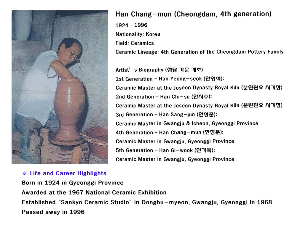Cheongdam Han Chang-mun. The piece is crafted in the Buncheong tradition,
